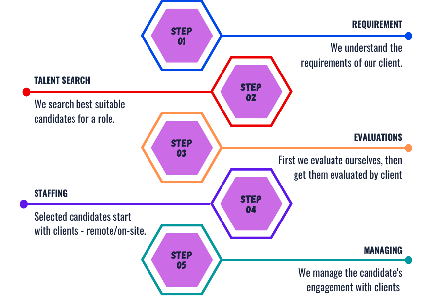 We go through a rigorous process to find suitable candidates, prepare them according to client needs and have them deployed at the client’s projects.